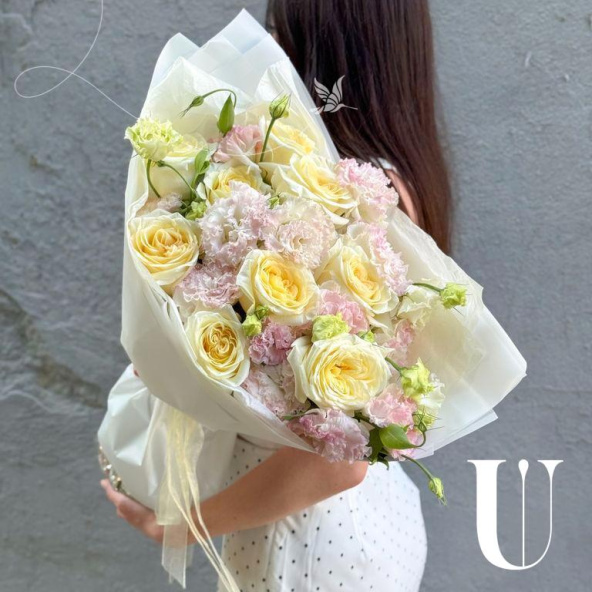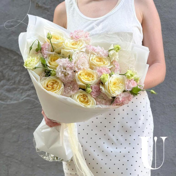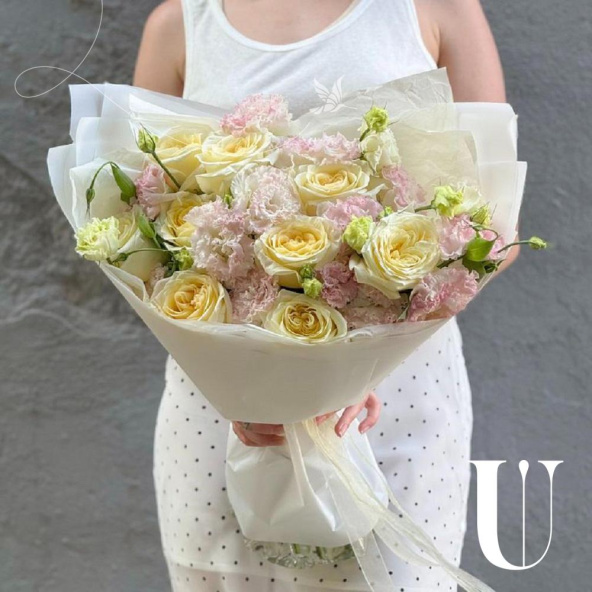 - Роза Вайт Охара, Эквадор, бело-розовая, пионовидная 50 см. - 9 шт