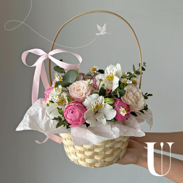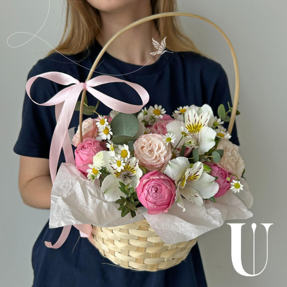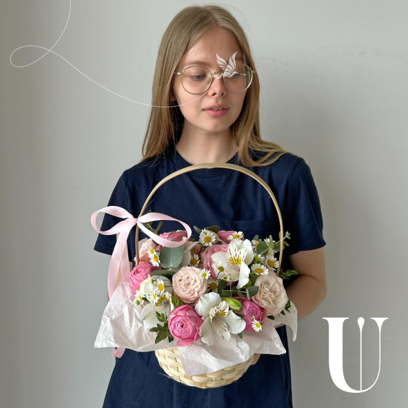 - Корзина бежевая (выс. 10 см, выс. с ручкой 30 см, шир. 25 см) - 1 шт