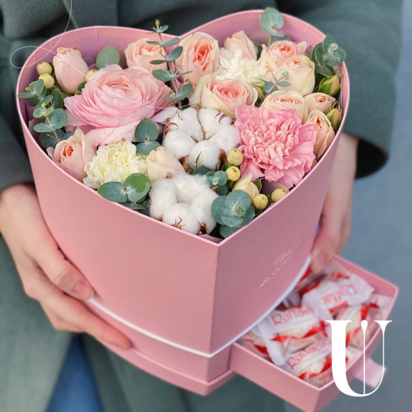 Цветы в коробке "Сердце для тебя"