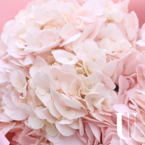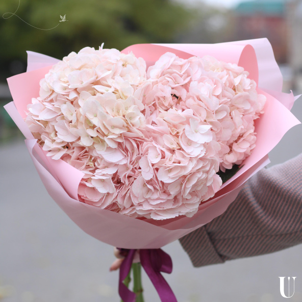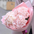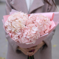 Монобукет в нежной гамме из 3 гортензий в упаковке
