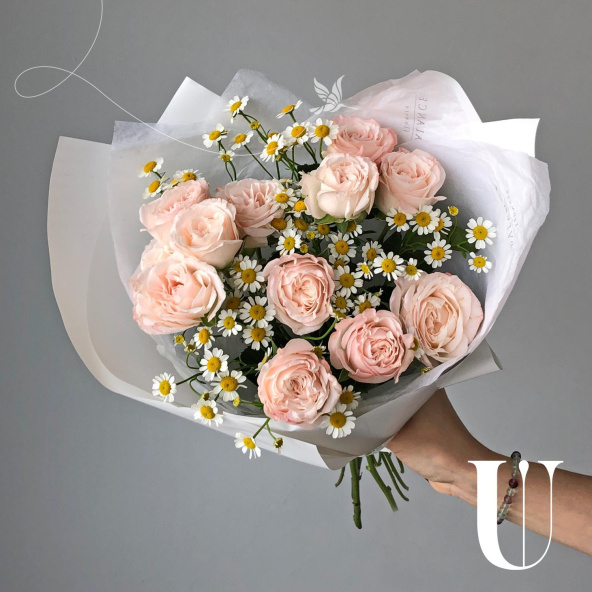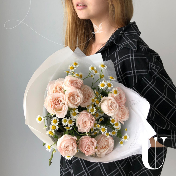 - Роза кустовая пионовидная, Бомбастик, нежно-розовая - 3 шт