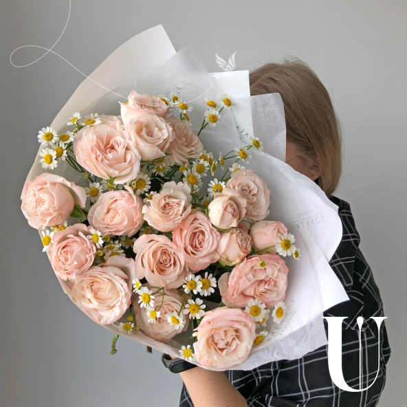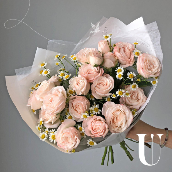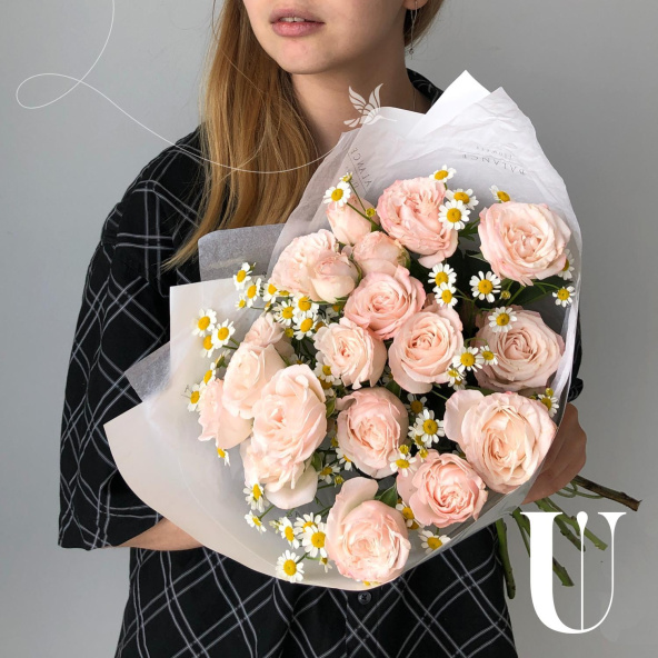 - Роза кустовая пионовидная, Бомбастик, нежно-розовая, 50 см. - 5 шт