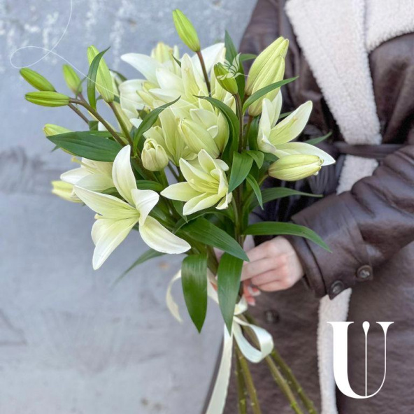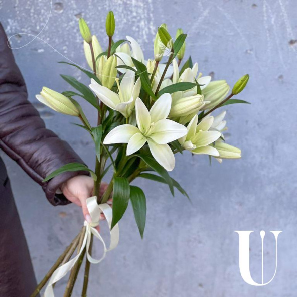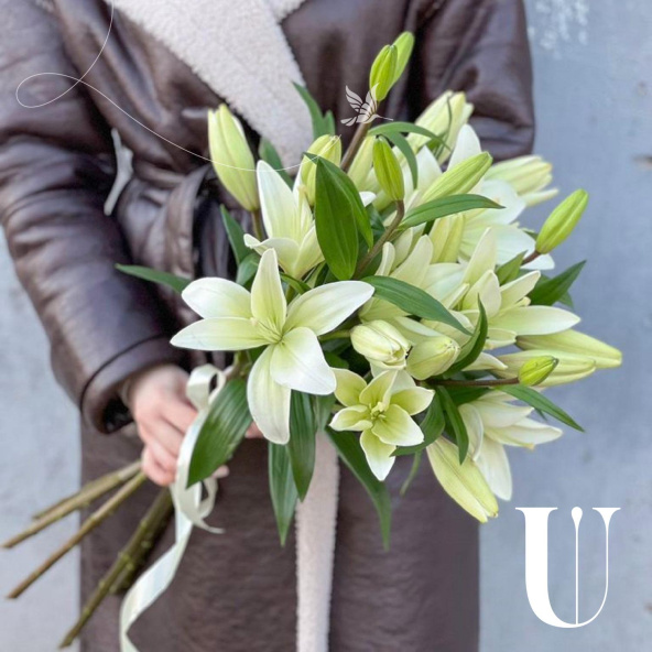Букет из 11 белых и розовых эустом в дизайнерской упаковке