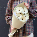 Монобукет из белых и кремовых диантусов в упаковке