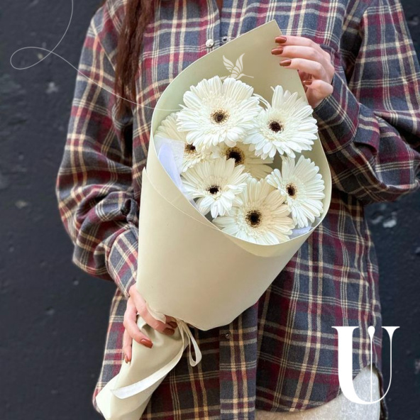 Монобукет из 9 белых диантусов в дизайнерской упаковке
