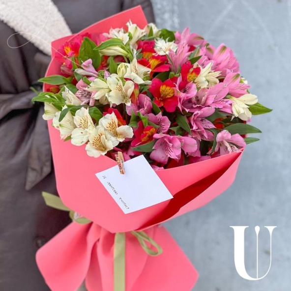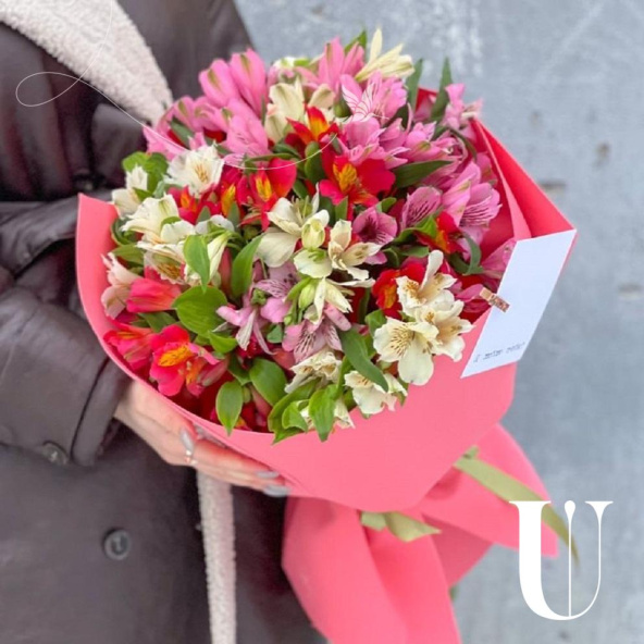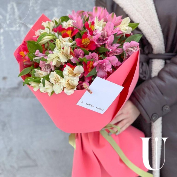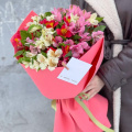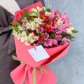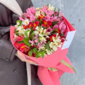 Букет из розовых и белых гвоздик в дизайнерской упаковке