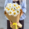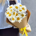Монобукет из белых хризантем в дизайнерской упаковке
