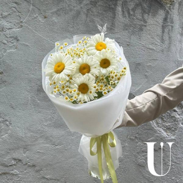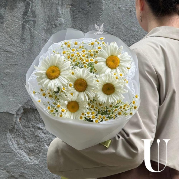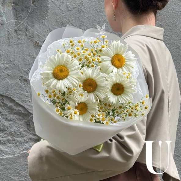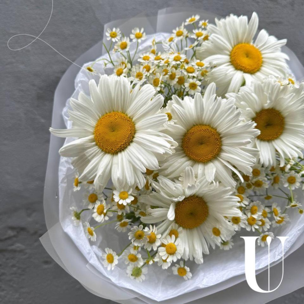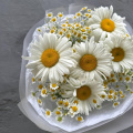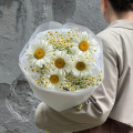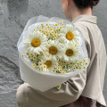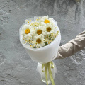 Монобукет из белых кустовых хризантем в розовой упаковке