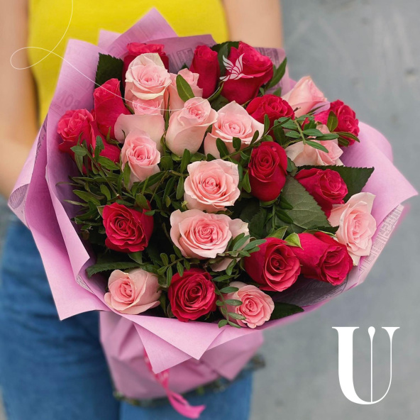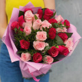 Монобукет из 55 коралловых диантусов в дизайнерской упаковке