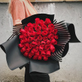 Монобукет из 15 пионовидных роз сорта Сильва Пинк в упаковке